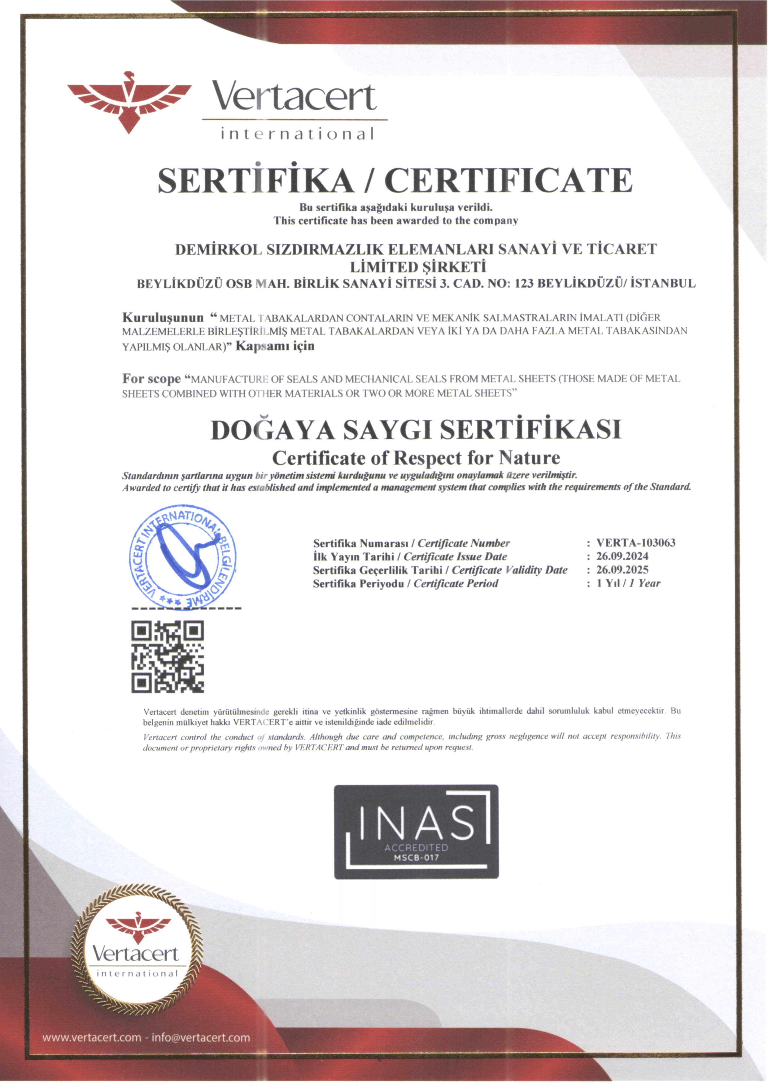 DOĞAYA SAYGI SERTİFİKASI
