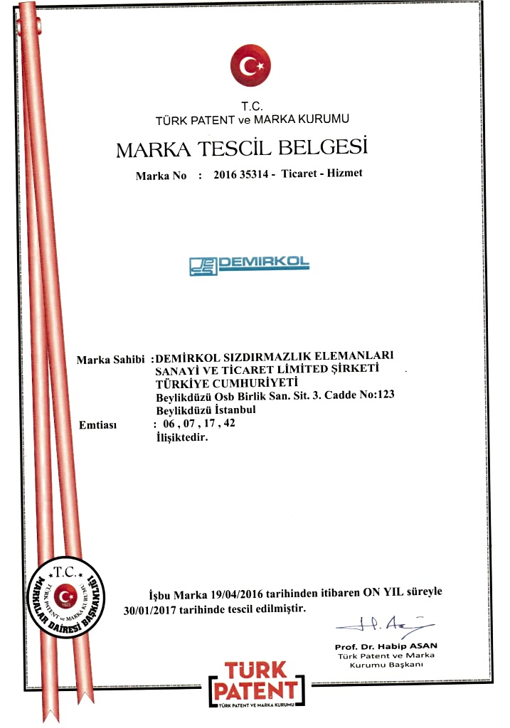 DEMİRKOL MARKA TESCİL BELGESİ